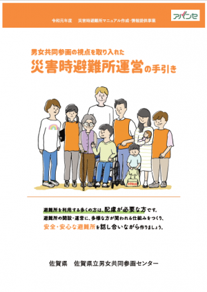 佐賀県立男女共同参画センターでは、大規模災害発生時における避難所の自主運営に「男女共同参画の視点」を取り入れるために、「男女共同参画の視点を取り入れた災害時避難所運営の手引き」を作成しました。避難所マニュアルの作成等にご活用いただければ幸いです。