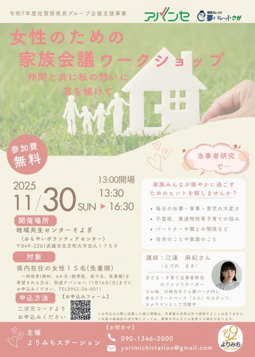 【11月30日開催】よりみちステーション主催 『女性のための家族会議ワークショップ~仲間と共に私の想いに耳を傾けて~』