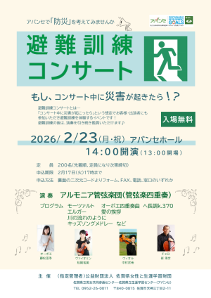 アバンセでは2月23日(月・祝)に「避難訓練コンサート」を開催します!