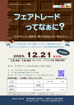 【12月21日開催】小中学生チャレンジ応援塾「フェアトレードってなぁに? ~チョコやコーヒーを味わい 親子でSDGsについて考えよう!~」