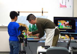 ▲マインクラフト体験 ▲粘土で作った人形でアニメ動画を撮ってみよう!