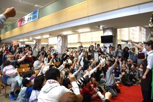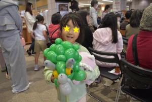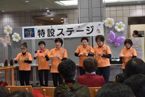 特設ステージでは実行委員の進行で、ハンドベル演奏&体験、クイズ大会、お手玉舞い&体験、手話の歌&体験バルーンアートパフォーマンス、じゃんけん大会などが行われ、大盛況でした。