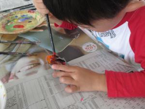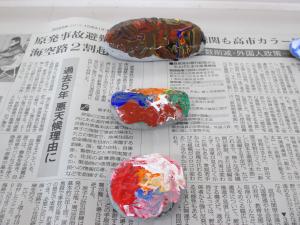 ▲少年自然の家クラフトワーク①丸太のマグネット ▲少年自然の家クラフトワーク②ストーンアート