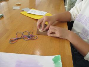 ▲少年自然の家クラフトワーク②ストーンアート ▲少年自然の家クラフトワーク③木のすべラップ