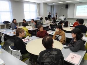 はじめに、4〜5人のグループに分かれ、リラックスした雰囲気で自己紹介や「ウェルビーイングとはどんな状態だろう?」ということをみんなで考える対話の時間を持ちました。