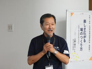 例えば、自分の公民館に明日来るのは「どんな子どもたち」で、「どんな高齢者」なのか。その人たちの具体的な顔を思い浮かべながら、あともう一工夫、二工夫を自分なりに加えてみること。本物の楽しさを生むのは「他の誰かではなく、その人たちと対面している自分にしかできない工夫」なのだと語られました。