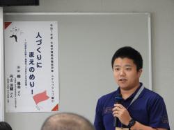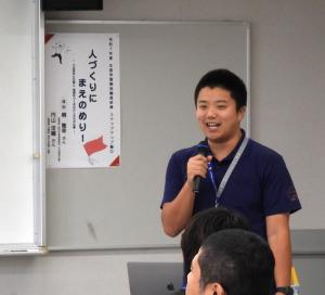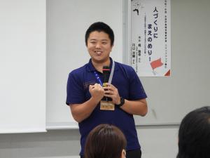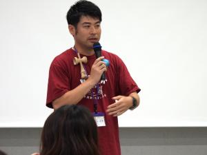 「社会を変えるぞ!なんて大きなことは言いません。僕は地域の土壌をじっくり分解させる『微生物』のような気持ちで活動しています。現場で実践できそうなエッセンスを、一つでも拾っていただければ嬉しいです」と話し、会場の笑いを誘いました。